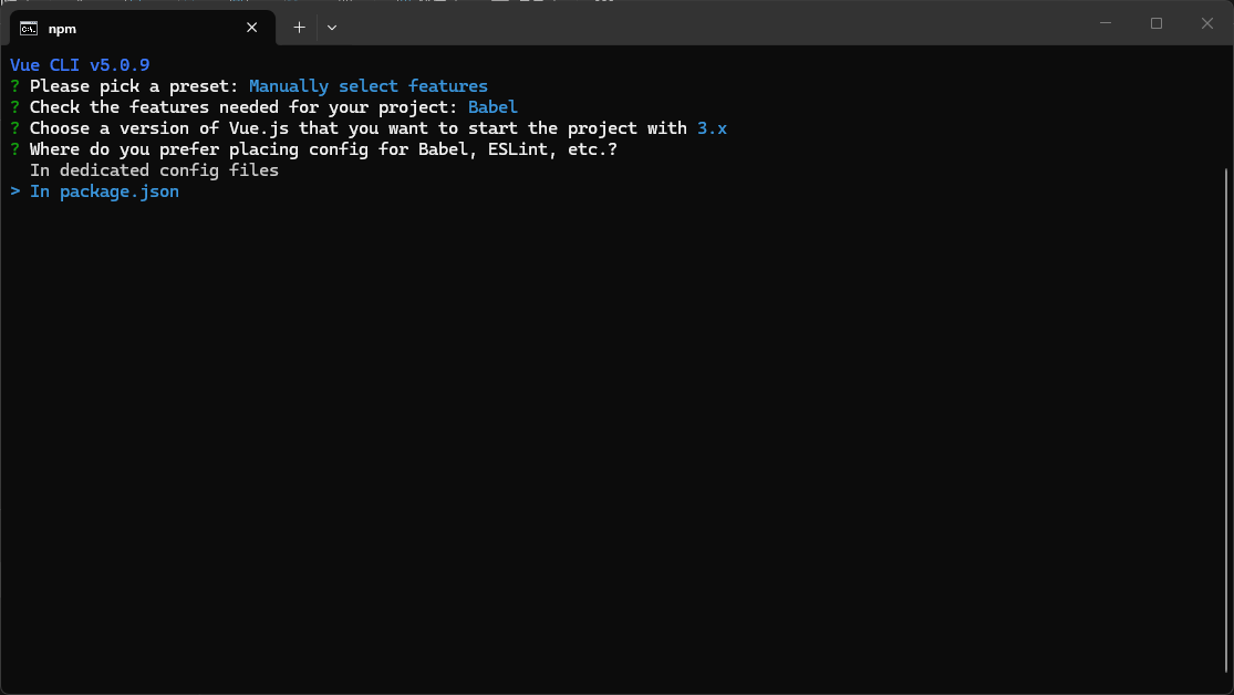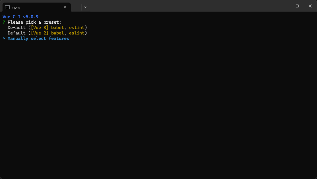 Vue版本的选择界面:这里选择自定义,回车到下一步。