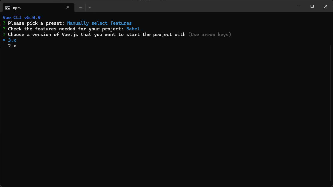 安装:npm install -g @vue/cli(请先安装node)